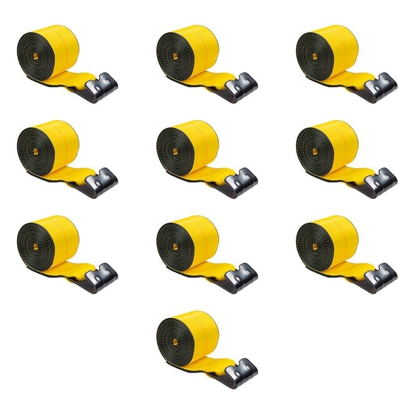 Winch Straps 4 inx 20 ft Yellow Heavy Duty Tie Down w/Flat Hooks WLL# 5400 lbs, 10PK