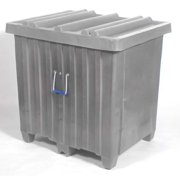 Bulk Container, Color Gray, Folded Depth Not Applicable, Folded Height Not Applicable, Folded Width Not Applicable, Fork Entry 2-Way Entry, Fork Pockets Fork Pockets Included, Maximum Operating Temperature 150 Degrees F, Minimum Operating Temperature -30 Degrees F, Mobility Stationary, Number of Drop Doors Not Applicable, Overall Height 42 in, Overall Length 42 in, Overall Width 34 in, Stackable Stacking Capable, Stacking Capacity 800 lb, Volume Capacity 23 cu ft, Weight Capacity 800 lb