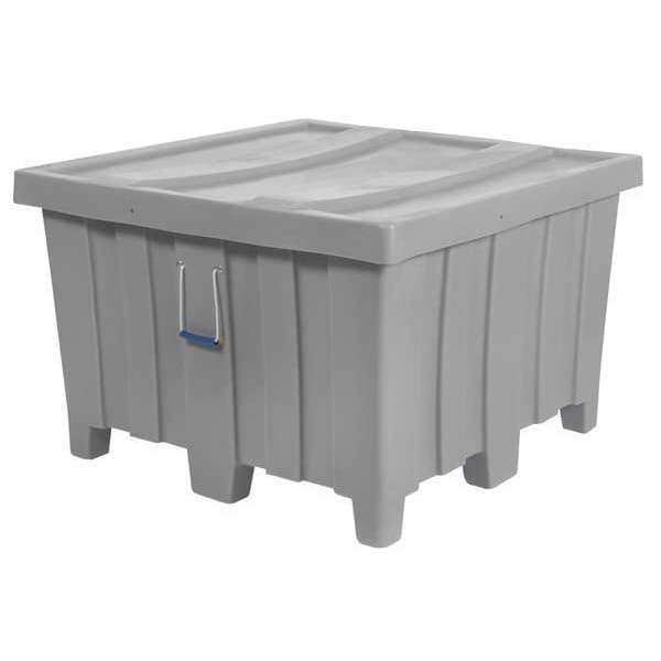 Bulk Container, Color Gray, Folded Depth Not Applicable, Folded Height Not Applicable, Folded Width Not Applicable, Fork Entry 4-Way Entry, Fork Pockets Fork Pockets Included, Maximum Operating Temperature 150 Degrees F, Minimum Operating Temperature -30 Degrees F, Mobility Stationary, Number of Drop Doors Not Applicable, Overall Height 29 1/2 in, Overall Length 44 in, Overall Width 44 in, Stackable Stacking Capable, Stacking Capacity 1,000 lb, Volume Capacity 23 cu ft, Weight Capacity 1,000 lb