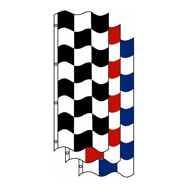 Create the Racing Look with these Checkered Flags! Made of ultra-rugged "Dura-Knit" style polyester fabric and penetration printed for two-sided display with fade resistant inks. Each 3 foot x 8 foot flag is finished with a durable canvas header and brass grommets along the 8 foot vertical side. Available in three color combinations.