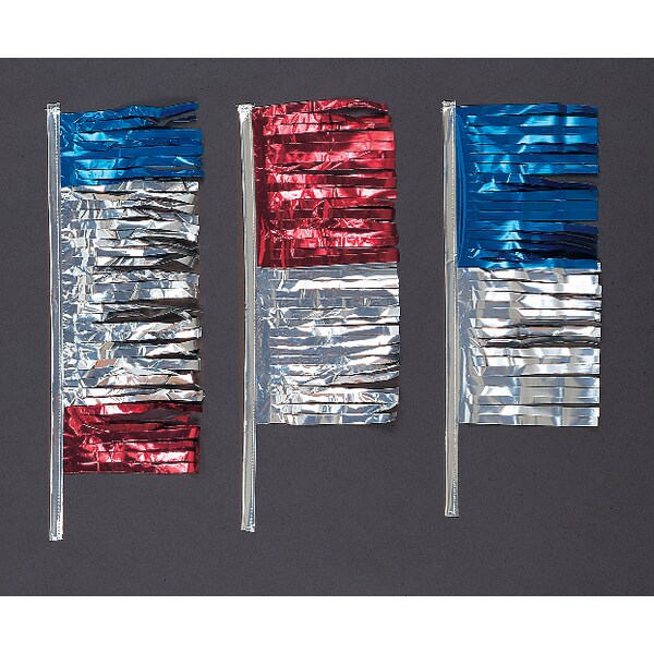 Outshine Your Competition! Made of brilliant, shiny metallic plastic, 12" x 3/4" strips are sewn side by side on a 32" sleeve. Slides over antenna, or for retractable antennas, use with antenna mast {520} or window clip kit {337}. Available in 11 color combinations. Sold in packs of a dozen (12)./Sleeve of product is silver, not as shown in the image.