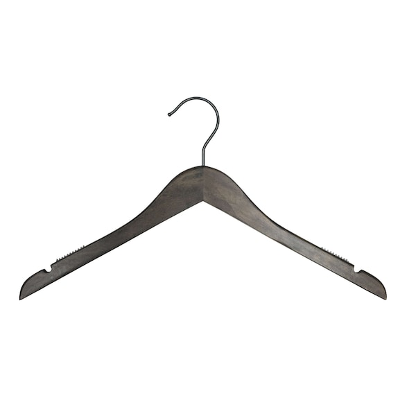 - 17" espresso finish hanger good for hanging all top pieces like shirts, blouses, dresses, sweatshirts, jackets