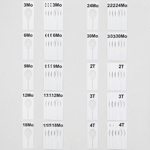 Clothing Size Dividers, Rectangular White, Black Print; 3MOS - 4T Kit 10 Sizes, 5 pcs. each, 50PK