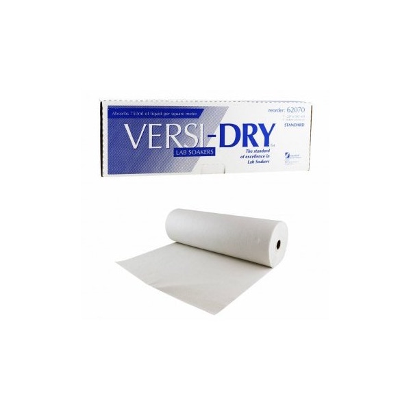 Versi-Dry Lab Soakers offer the best value and protection for covering all work surfaces. Absorb spills quickly and provides a soft thick cushion for fragile items. Standard Versi-Dry absorbs up to 750 ml/m2.Features a highly durable blue top layer that remains intact even when wet. Mats have a skid resistant polyethylene backing.