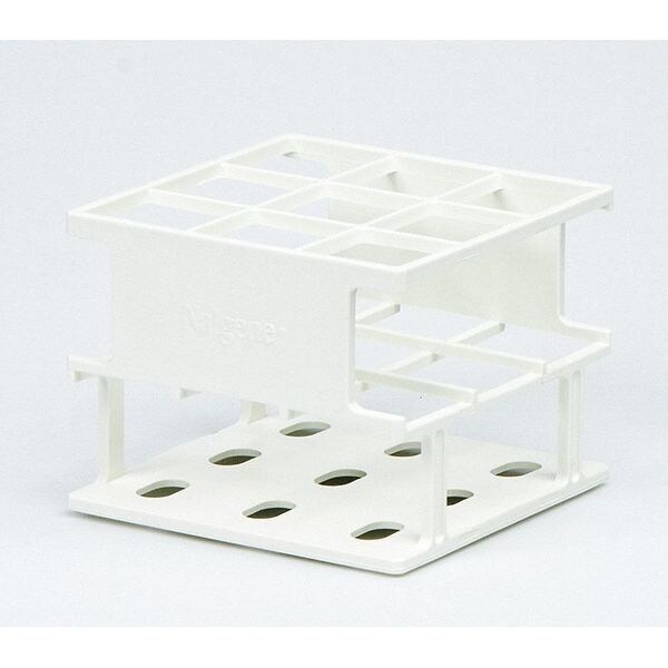 Item Test Tube Rack, Material ResMer, White, Height 3 5/16 in, Length 4 5/16 in, Width 4 5/16 in, Format 3x3
