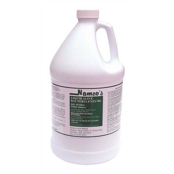 NAMCO -- gallon Concentrated liquid of digesting bacteria and enzymes. Controls bacteria that causes odor. Removes odors such as urine, fish, garbage, smoke, and mildew. Use full strength or dilute. Can be used in micro fogger and carpet cleaning equipment. 4 Per case, sold each. Min. Order: 1 each.Concentrated liquid bacteria and enzymes for digesting organic odors in carpet, hard surface floors, upholstery and fabricGood for removing odors from urine, fish, garbage, smoke and a wide range of other organic related odors such as mildewCan be injected into carpets and used in carpet cleaning equipmentUse full strength or diluteMay also be used in micro-fogger for penetration in air ducts, walls, carpets, etc.Dilute 16 oz makes 1 Gal.