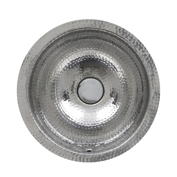 Nantucket Sink's round hand hammered stainless steel lavatory sink is designed to be undermounted. Make a statement with this show-stopping sink! Size may vary slightly due to the hand made nature of this sink. Made of 18 gauge stainless steel, a material traditionally found in kitchen sinks and known for its durability our Brightwork Collection sinks now offer an array of styles in stainless! All the shine an glamour without the maintenance! Durable 18 gauge stainless steel will endure while adding sparkle to your bathroom or powder room. Make a focal point of a room with this unique sink. This sink features an overflow. Easy occasional polishing will keep it lustrous for a lifetime.