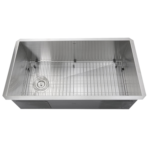 32In. Large Rectangle Single Bowl Undermount Small Radius Stainless Steel Kitchen Sink, Offset Drain