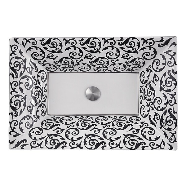 Nantucket Sinks La Maddalena fireclay bathroom sink is truly a work of art. As part of our Regatta Collection, La Maddalena showcases the craftsmanship of the Italian artisans who make our sinks. An exquisitely designed fireclay bath basin, the La Maddalena is a semi-recessed, rectangular vessel sink for your vanity. It is highlighted by a hand-painted interior scrolling motif and a genuine platinum leaf painted exterior rim.
