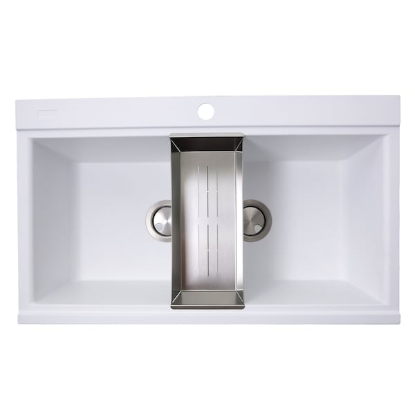 Large Double Bowl Prep Station Topmount Granite Composite White