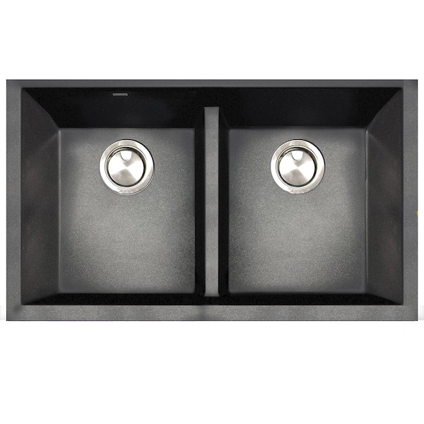 Low Divide 50/50 Double Bowl Undermount Granite Composite Black