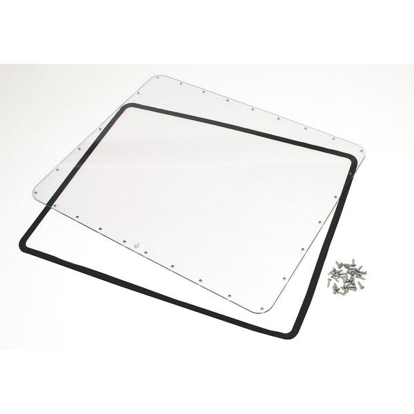 Waterproof Panel Kit, Material Polycarbonate, Overall Length 22 3/4 in, Overall Width 17 3/4 in, Overall Height 1/8 in, Panel Thickness 3/16 in, Gasket Thickness 1/16 in, Attachment Type Integrated Bezel, Includes Mounting Hardware Mounting Hardware Included, Number of Panels 1, Color Clear, Product Type Waterproof Panel Kit, Series 945