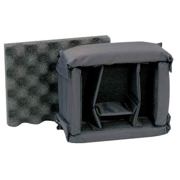 Padded Divider Set, Black, Length 9 3/8 in, Width 7 3/8 in, Height 3 1/2 in, Hook-and-Loop Attachment Type, Number of Pieces 5, For Use With Mfr. No. 905 Nanuk Case, Includes (1) Base, (1) Convoluted Foam Pad, (1) Short Divider, (2) Long Dividers