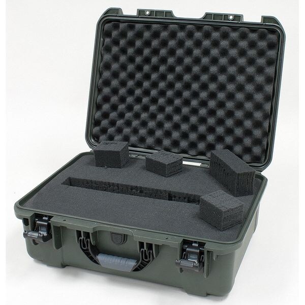 Protective Case, Bottom Depth 5 29/32 in, Color Olive, Inside Depth 8 in, Inside Length 20 in, Inside Width 14 in, Lid Depth 2 7/64 in, Material Lightweight NK-7(TM) Resin, Overall Depth 8 1/2 in, Overall Length 21 11/16 in, Overall Width 24 in, Standards ATA 300 (Impact Test), ASTM D4169 (Falling Rain-Vibration-Drop Tests), Mil-STD-810F (Immersion Test), IP 67 (Ingress Protection Tests-Dust and Immersion)., Weight 8.4 lb