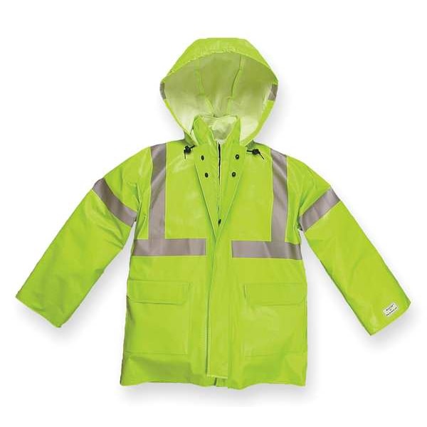 ANSI Class 3, ATPV Rating 7.2 cal/sq cm, Arc Flash PPE Category 1, Closure Type Zipper Front with Dual Over, Collar Style Hood-in Collar, Color Lime, Fabric Weight 8 oz, Features Nomex Mesh Ventilation System with Fall Protection Access, Gender Men's, High-Visibility Yes, Hood Style Packable Hood in Collar, Includes Hood Yes, Includes Lining No, Arc Flash Rain Jacket, Length 30 in, Lining Material Polyester, Material Leather PU/PVC, Maximum Chest Size 42 in, Minimum Chest Size 40 in