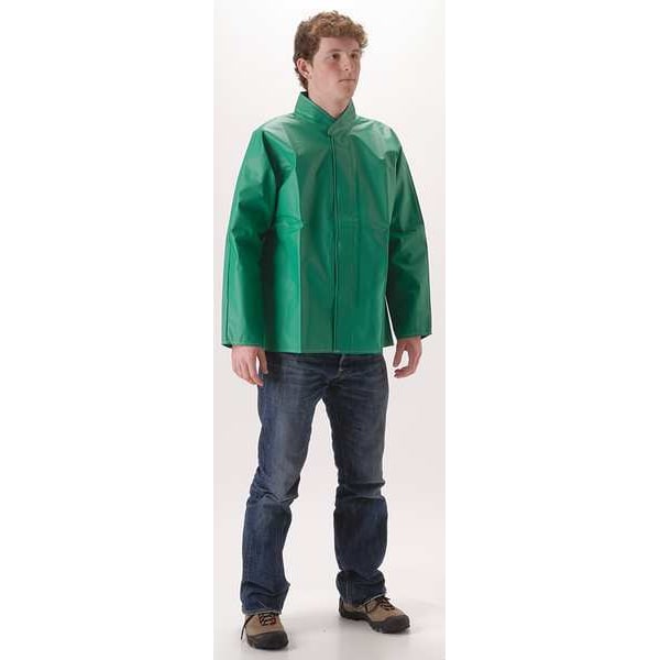 Chemical Splash Jacket, Attached Hood No, Chest Size - Maximum 46 in, Chest Size - Minimum 44 in, Closure Type Snaps, Color Green, Gender Unisex, Material Polyester, Material Coating PVC, Named Size L, Overall Length 29 in, Product Type Jacket, Seam Style Welded
