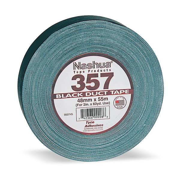 Adhesion to Steel 95 oz/in, Tape Brand Nashua, Clean Removal Time Not Rated, Assembly and Manufacturing, Construction, General Maintenance and Repair, Metalworking, Warehouse, Environment Indoor/Outdoor, Imperial Tape Length 60 yd, Imperial Tape Width 1 7/8 in, Continuous Roll, Series 357, Tape Adhesive Material Rubber, Tape Backing Material Polyethylene Coated Cloth, Tape Color Black, Tape Sub-Type General Purpose Duct Tape, Tape Thickness 13 mil, Duct and Repair Tape