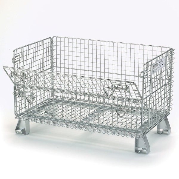These wire containers are collapsible to set up in seconds and fold flat to save space and reduce return shipping costs. Open wire mesh provides excellent visibility for easy inventory control. Wire storage containers help eliminate dust and dirt build up. Notched, positive stacking legs permit handling by forklift or pallet truck. Drop gate allows access to contents, even when stacked. Corrosion resistant zinc-plated finish.