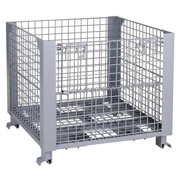 Bulk Wire Mesh Container, Color Silver, Container Wall Type Vented, Fork Entry 4-Way Entry, Fork Pockets Yes, Maximum Operating Temperature 300 Degrees F, Minimum Operating Temperature -50 Degrees F, Mobility Stationary, Number of Drop Doors 1, Overall Height 36 in, Overall Length 40 in, Overall Width 48 in, Stackable Yes, Stacking Capacity 8,000 lb, Volume Capacity 30.3 cu ft, Weight Capacity 4,000 lb, Collapsible No, Includes Lid No, Bottom Inside Length 38 in, Bottom Inside Width 46 in