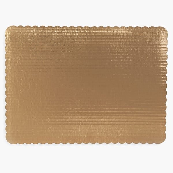 This 19x14 Rectangle Half Sheet Cake gold pad provides a stable foundation for your cake. This cake board is perfect for use beneath cakes being transported or displayed. Sold in packs of 100.