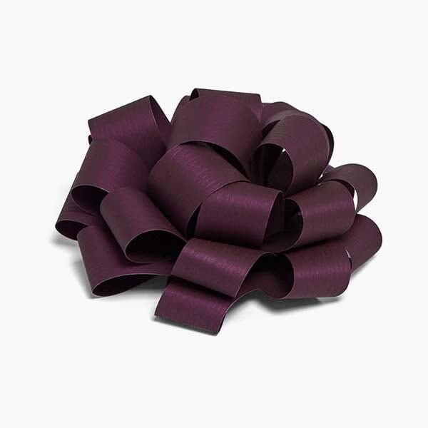 Burgundy 3.5 textured pom bows in pack of 25. Ready-made Textured Pom Gift Bows are 100% polypropylene with a self-adhesive backing. Ribbon measures approximately 7/8 wide, forming 3 1/2 bows with 25 loops. Use alone or with our