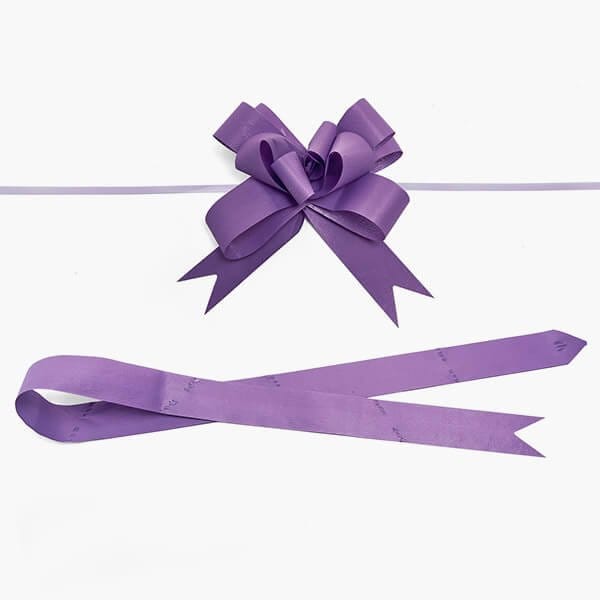 6 Matte Lavender Butterfly Pull Bows are made of 100% polypropylene and are durable with a soft, paper feel. The embossed ribbon is approximately 1 1/2 wide and tail is 34 long. Total bow length is 6 3/4. Pack of 12. These bows coordinate with our