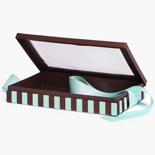 Aqua & Chocolate Stripe Window Box with Ribbon, 10x6x1.5, 12PK