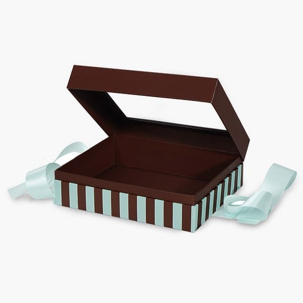 Aqua & Chocolate Stripe Window Box with Ribbon, 7.75x7.75x3, 12PK