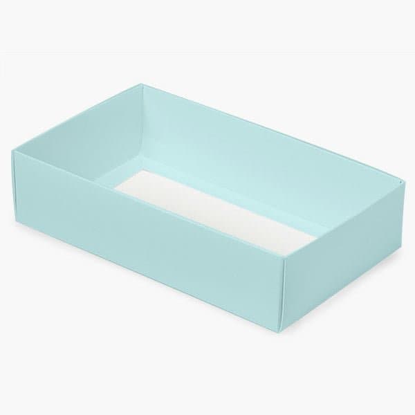 Aqua Double Macaron Cookie Box Base. Use with any color macaron sleeve to create your own look. Complies with FDA regulations for food contact. Inside dimensions of base when assembled: 8 x 4 3/4 x 1 15/16.