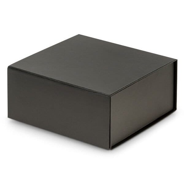 These high quality, collapsible black gift boxes measure 6x6x2.75. Boxes are easy to assemble with strong magnets to secure the box closed. Boxes come with paper covered glue strips to make the box permanent.
