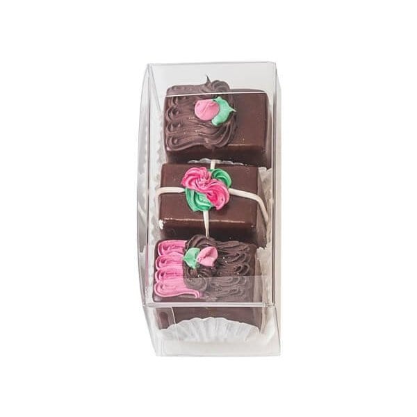 1-piece ultra clear folding rectangle box is great for 2-3 truffles. Great for wedding favors! Actual box dimensions are 4 1/4 L x 2 1/8 W x 1 5/8 H. This box ships and stores flat! These boxes comply with FDA regulations for direct food packaging.