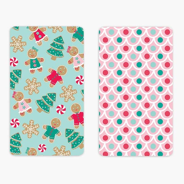 Gingerbread Cookie Backers are printed with one side a gingerbread design and the other a pink scalloped design. They are made of sturdy 16 Pt board and are food safe and grease-resistant. Use with our heat sealable cello bags or trim to desired size.
