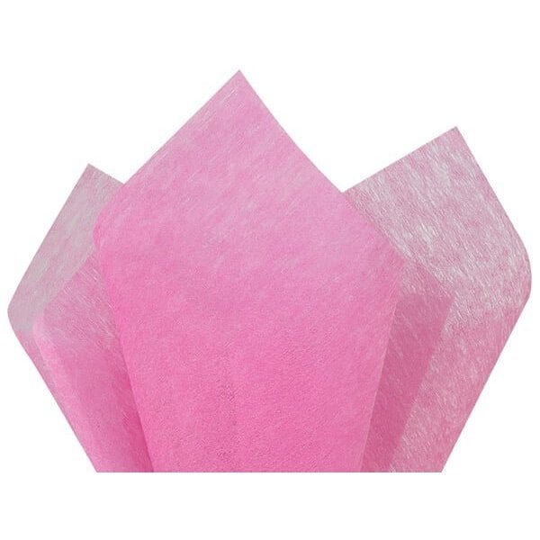Hot Pink Non-Woven Tissue by the ream. Sheets look and feel like fabric but are strong polyester. Non-woven tissue is reusable and 100% Polyester.