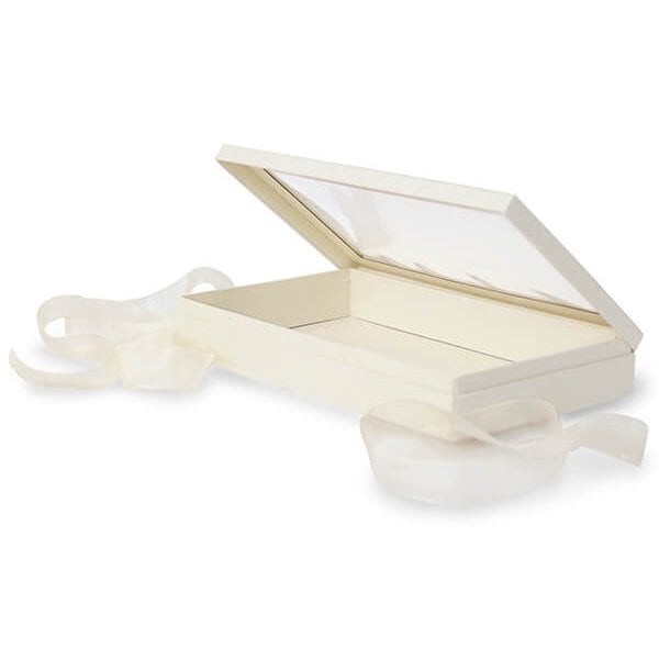 Ivory Window Box with Ribbon, Large Single Layer 10x6x1.5, 12PK