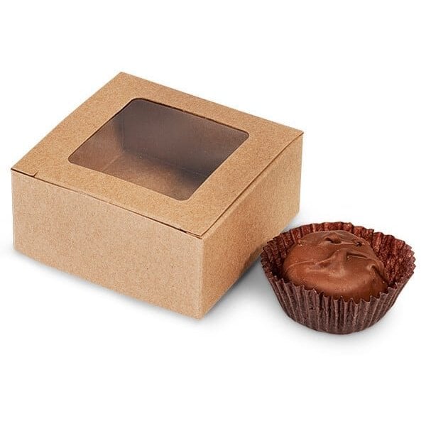 Kraft Window Candy Truffle Boxes, 2-5/8x2-3/4x1-1/4, Holds 4, 25PK