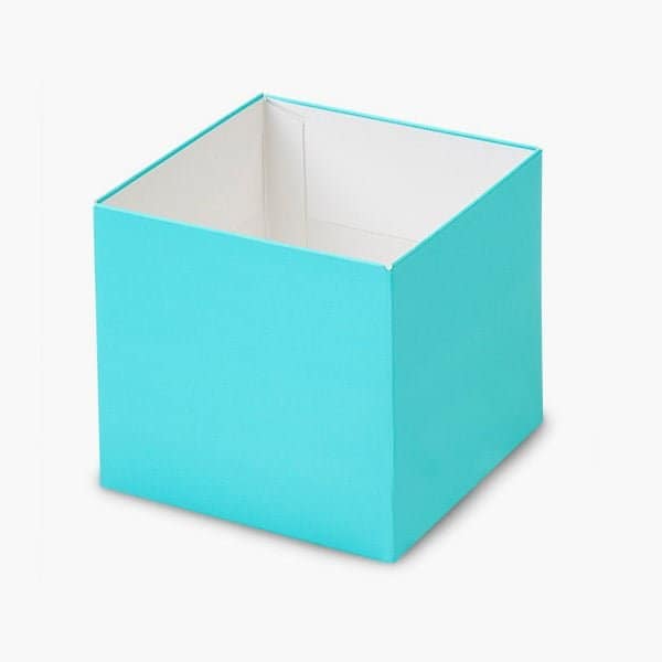 Turquoise 4x4x3.5 box base sold in packs of 25. Lids sold separately. Packed flat. Automatic box construction. Mix & match colors. Pantone color 3105.