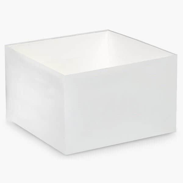 White 8x8x5 box base sold in packs of 25. Lids sold separately. Packed flat. Automatic box construction. Mix & match colors!
