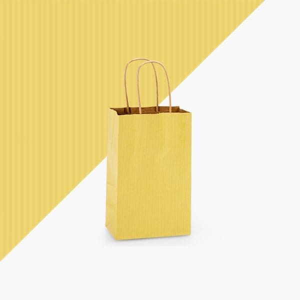 Rose Mellow Yellow Shadow Stripe Shopping Bags by the 25 pack are made from 50% recycled paper. Produced with water based inks and glues.