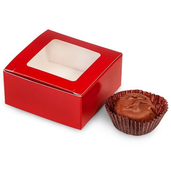 Red Window Candy Truffle Boxes, 2-5/8x2-3/4x1-1/4, Holds 4, 25PK