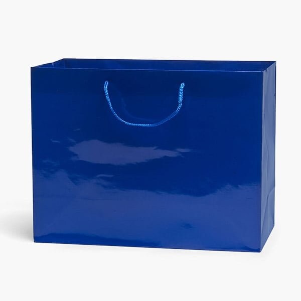 Medium size Royal Blue Gloss Laminated Gift Bags by the carton.