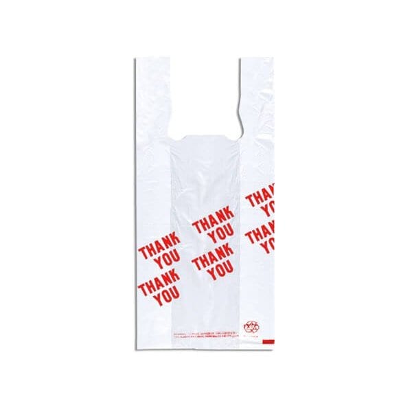 Small White 8x5x18 plastic T Sacks in 1000 bulk pack. Thank You text printed on bag may vary in color. Most plastic grocery sacks are.55 mil guage.