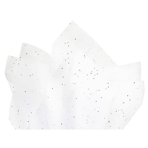 Add a finishing touch to your packaging and gifts with white glitter tissue paper from Nashville Wraps.