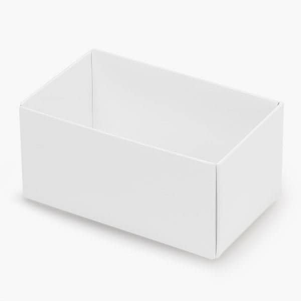 White Cookie Box Base. Use with any color sleeve to create your own look. Complies with FDA regulations for food contact. Inside dimensions of base when assembled: 3 3/4 x 2 1/2 x 2.