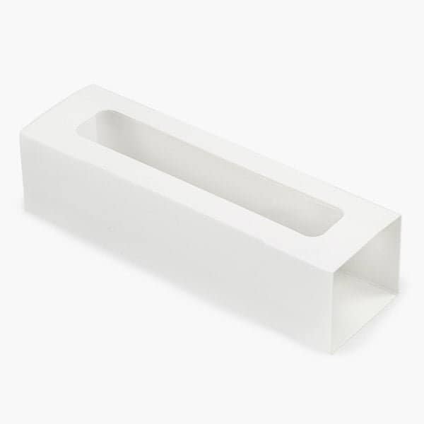 White Single Macaron Cookie Box Sleeve. Use with any color macaron base to create your own look. Complies with FDA regulations for food contact. Outside dimensions of sleeve when assembled: 8 1/4 x 2 1/2 x 2 1/16.