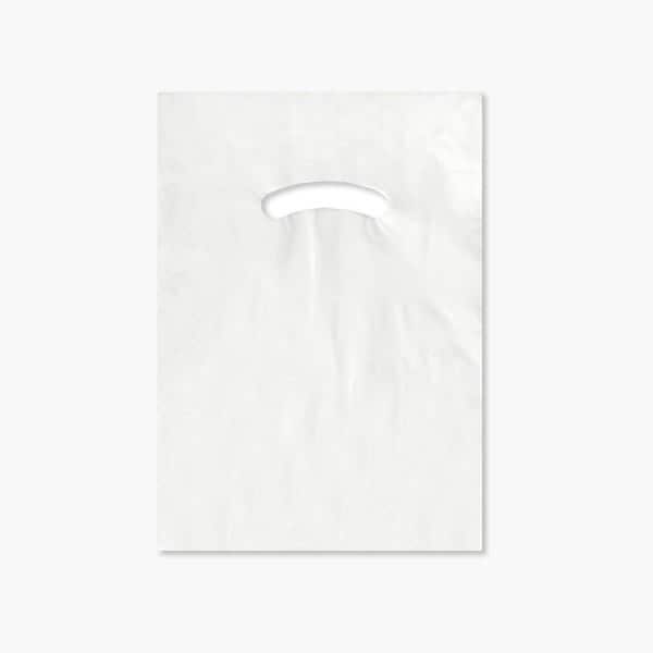 9 x 12 White Super Gloss plastic merchandise bags are flexible and strong. These bags are made from deluxe low density 1.25 mil polyethylene plastic and are 100% recyclable.