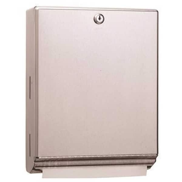 Bobrick is a 100+ year-old global washroom accessory and partition company and a leader in product innovation and manufacturing. Bobrick prides itself as a company that delivers best-in-class products and service, while fostering an environment of collaboration and continuous improvement. Bobrick is a recognized leader in toilet partition systems and commercial restroom accessories, carrying a strong legacy of product innovation and manufacturing expertise.Satin-finish stainless steel; all-welded constructionDispenses 400 C-fold or 525 multifold towels measuring 3-1/8 in. to 3-13/16 in. 79-97mm deep without adjustment or adaptersDoor has tumbler lock and piano-hingeCabinet slots indicate refill timeHemmed towel tray opening