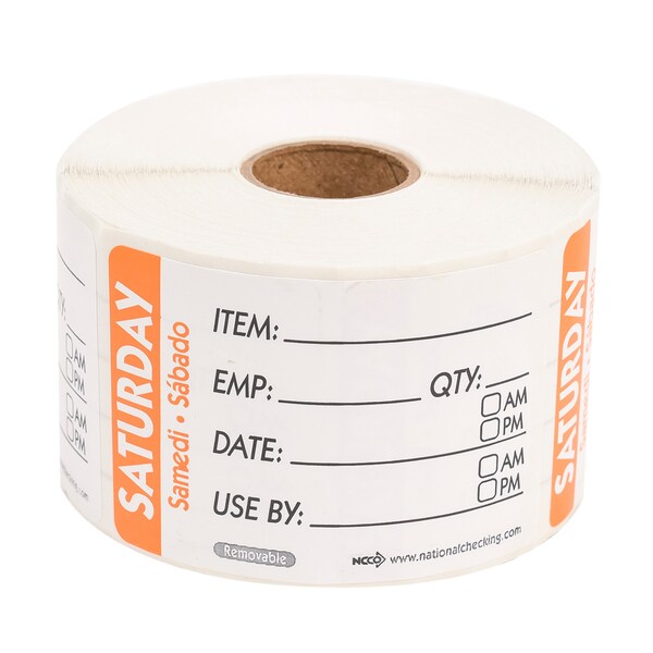 2X3 Trilingual Item-Date-Use By Saturday Orange, PK500