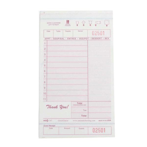 4.25"x7.25" 3 Part Carbonless Maroon 11 Line Guest Check -50 Book, PK40