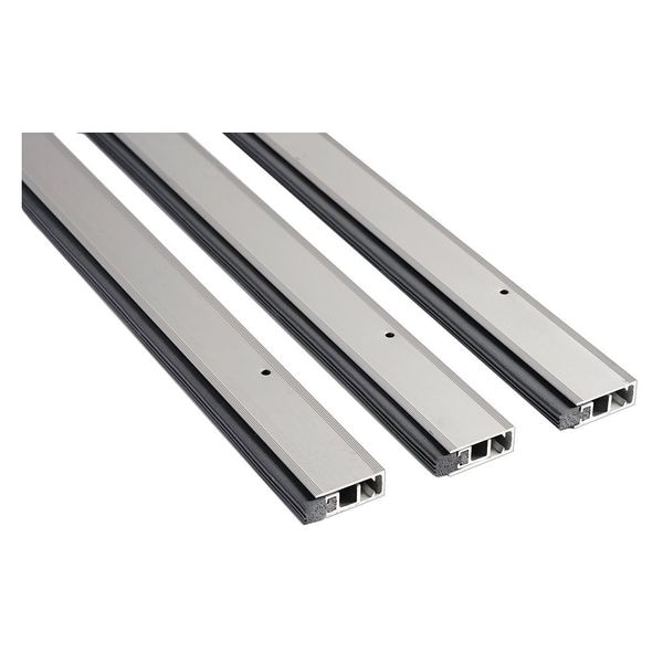 Adjustable Perimeter Seal, Overall Length 36 In., Overall Width 1-1/4 In., Overall Height 1/2 In., Color Gray, Material Anodized Aluminum, Flange Material Aluminum, Flange Thickness 1/16 In., Insert Color Gray, Insert Material Silicone, Insert Size 1/4 In., Mounting Type Screws, Projection 1/2 In., For Use With Doors, Sold As Set, Standards ANSI/UL10C (Category H), CAN/ULC-S104, ANSI/UL10B, ANSI/UL1784, ANSI/BHMA A156.22
