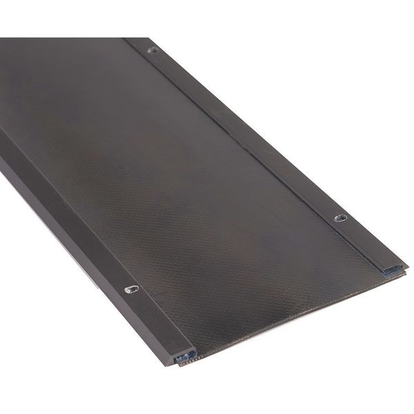 Reinforced Safety Seal, Overall Length 8 ft., Overall Width 5 In., Overall Height 3/16 In., Color Dark Bronze, Material Aluminum, Flange Material Aluminum, Flange Thickness 3/16 In., Insert Color Black, Insert Material Reinforced Neoprene, Insert Size 5 In., Mounting Type Screw, Stays Flexible to -20 Degrees F, Projection 3/16 In., For Use With Doors, Sold As Roll